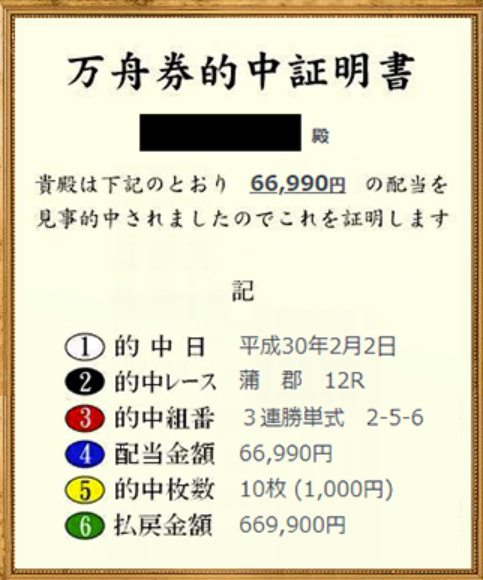 今年2月には上記の通り蒲郡12Rにて66.990円の高額配当を的中!