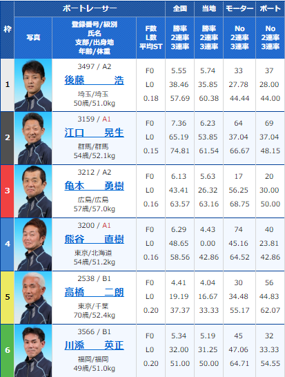 5号艇高橋二郎のベテラン操縦にも期待したいです。