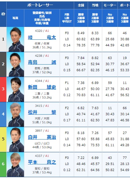 【本 命】1 峰 竜太