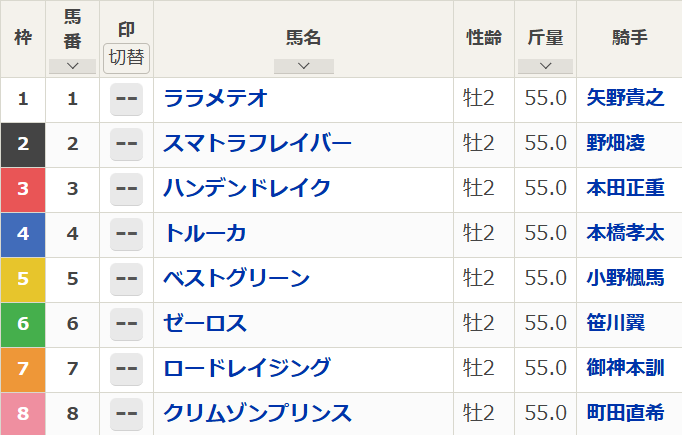 当馬もハンデンドレイク同様に2戦2勝でまだまだ底を見せていない。そして管理している荒山厩舎も同じである。当馬は1400m戦で連勝しているので距離延長でも問題ないかと考えることが出来る。引き続き笹川騎手が騎乗してくれるのも心強い。