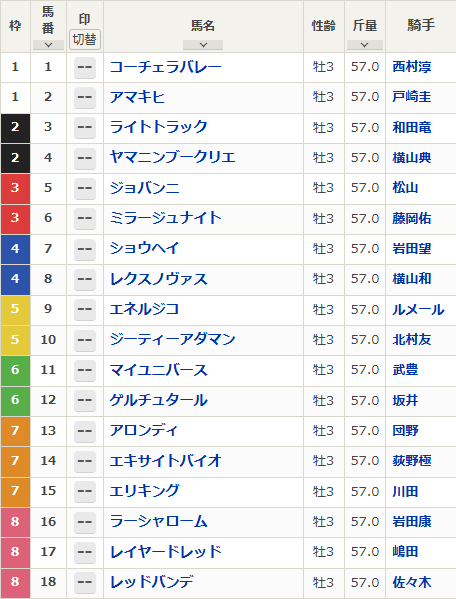デザインが以前の形に戻ったことからポスターからはリピーター説を唱えていたのだが、菊花賞は生涯で1度出走出来るか否かのレースなのでリピーターは存在しない。なので今回はシンプルに背景色から考えたい。菊ということで黄色とオレンジでまとめている。となると9番エネルジコ、10番ジーティーアダマン、13番アロンディ、14番エキサイトバイオ、15番エリキングの中から勝ち馬が出るのではないだろうか。