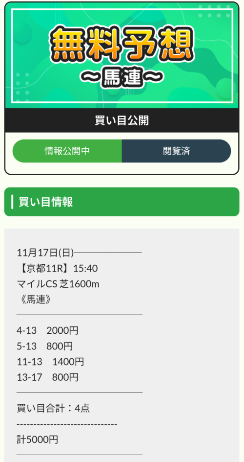マイルCS・無料情報