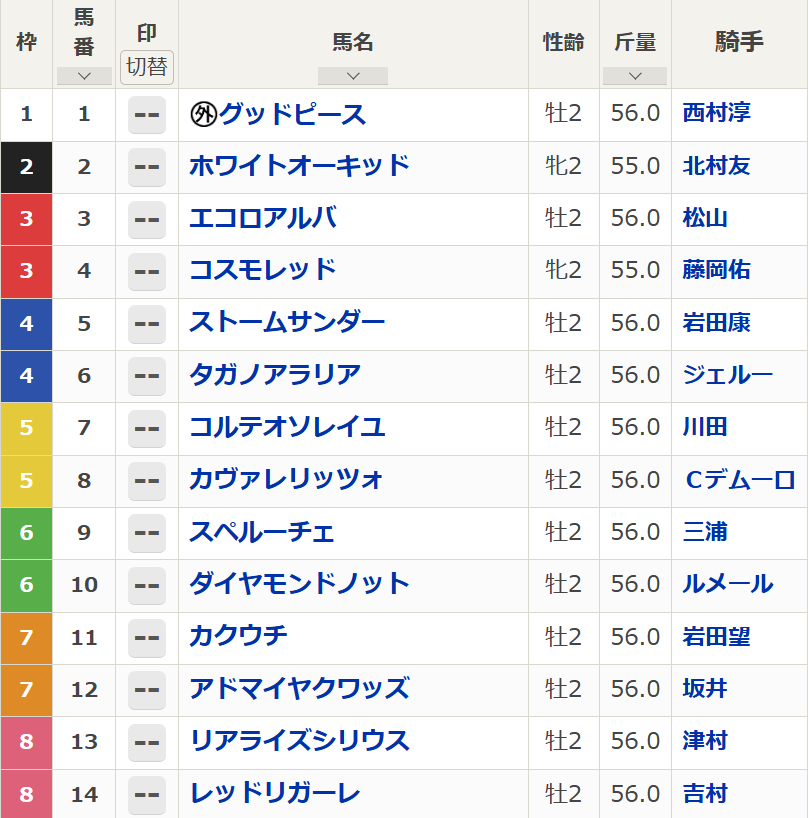 ★朝日杯フューチュリティステークス2025枠順確定!!