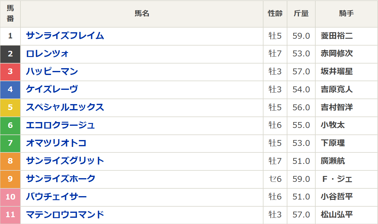 当馬は昨年の4着馬なので複勝圏内のチャンスはある。昨年と同ローテーションなのも好感が持てるうえに、昨年以上に勢いがある。今年も地元のトップジョッキー吉村騎手を手配しているので勝負気配も高いと感じるので抑えておく。
