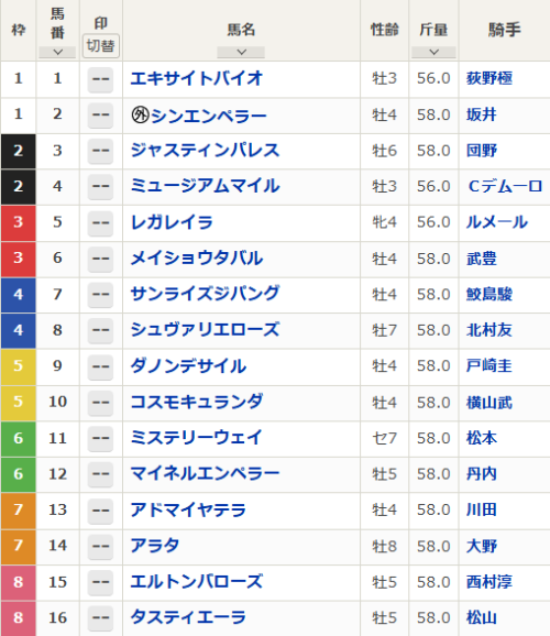この秋はJRAが全面協力している『ザ・ロイヤルファミリー』が放送された。JRAが全面協力しているからなのか、競馬の物語だからなのか知らないがやたらとこの放送がサインになることが多い。このドラマに出演した騎手が勝利したレースもある。残すは北村友騎手とC.ルメール騎手の二名である。C.ルメール騎手は当然と言えるが人気サイドの馬に乗るのだが、北村友騎手は2桁人気になりそうな8番シュヴァリエローズに騎乗する。さすがに勝ち負けは厳しいだろうが、馬券を荒らす伏兵として飛び込んでくるサインだ、