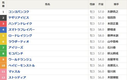 デビューから4戦一度も連対を外していない点は能力が本物である証拠だ。本命馬と違って浦和の当該コースを経験しているのは大きなアドバンテージで、勝利していることから適性も問題ない。馬体重も順調に増やしているが、これは心身ともに成長してきた証。初重賞で一気に相手関係が上がるが、今の完成度なら十分勝負出来る。