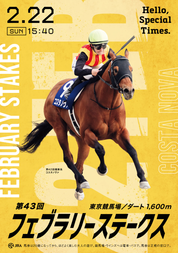 ポスターは今年も型は変わっていない。昨年の勝ち馬が映っているポスターなのだが、ワンシーンの切り抜きではなく、馬と騎手だけを切り抜いているのは少し違和感があった。そしてダートの色に近い枠色の黄色を背景カラーに使っている。昨年の勝ち馬コスタノヴァが映っているのだが、昨年以上に勝ち馬が押し出されている場合連覇もあるのかも知れない。